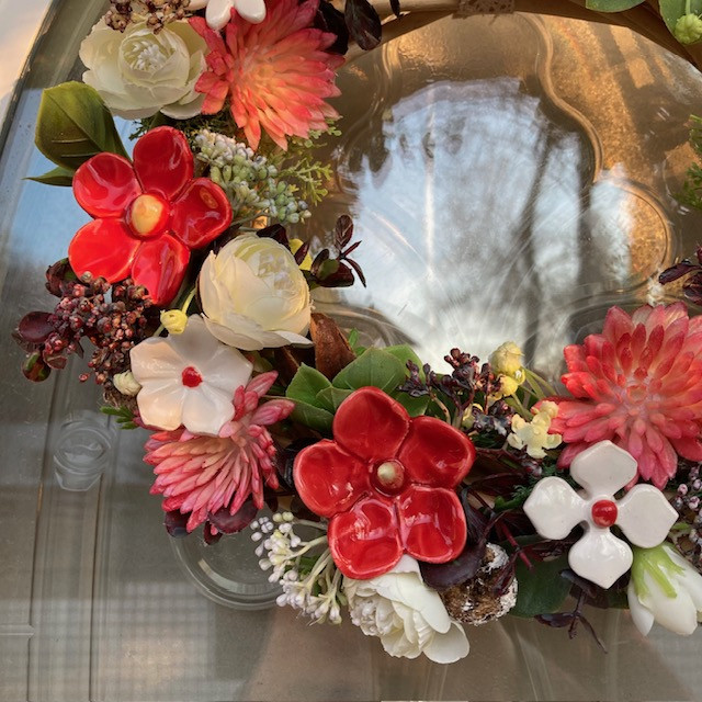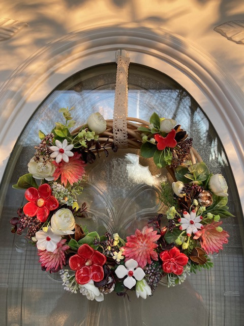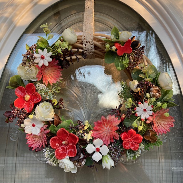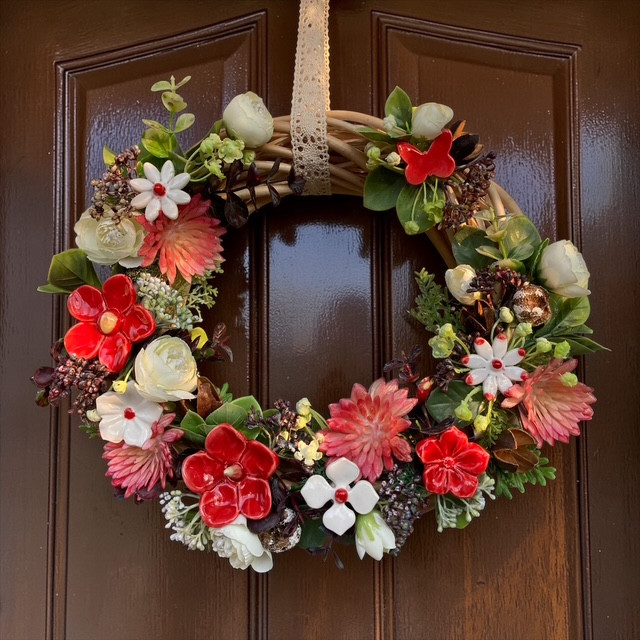Egy igazán különleges ajtódísz, amelyet saját készítésű, kézzel formázott és festett kerámia virágaink tesznek egyedivé.