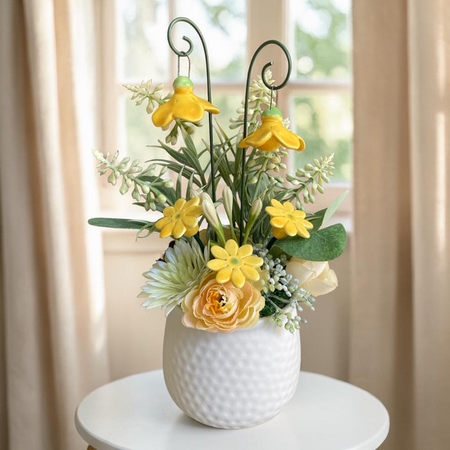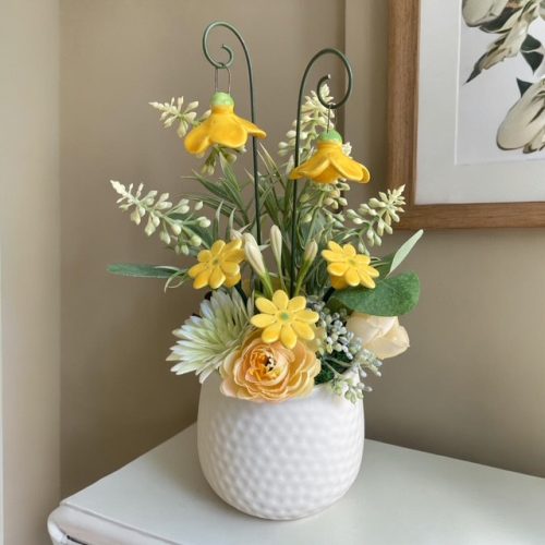 Asztaldísz mini harangvirágokkal - sárga