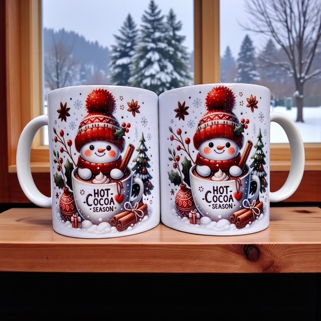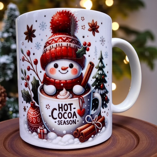 Karácsonyi bögre hóemberrel, forró csokival - 3 dl