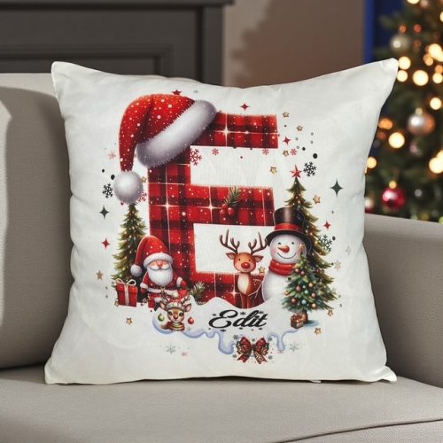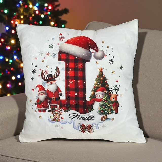 Bájos karácsonyi párnahuzat saját névvel, kezdőbetűvel. A kezdőbetűt télapó, hóember, rénszarvas és fenyőfa karakterek díszítik. A név a betű alatti fehér havas részre kerül beírásra. Egy igazán különleges egyedi ajándék, melynek mindenki biztosan örülni fog.Méret 40*40 cm, anyaga polyester.A nevet az EGYEDI SZÖVEG mezőben kell megadni. A kezdőbetű egyjegyű magán vagy mássalhangzó lesz ékezet nélkül, de a felírt névnél ékezetes és páros mássalhangzós név is megadható! (pl. Ágnes; Szilvia).Elkészítési idő: 3-5 munkanap