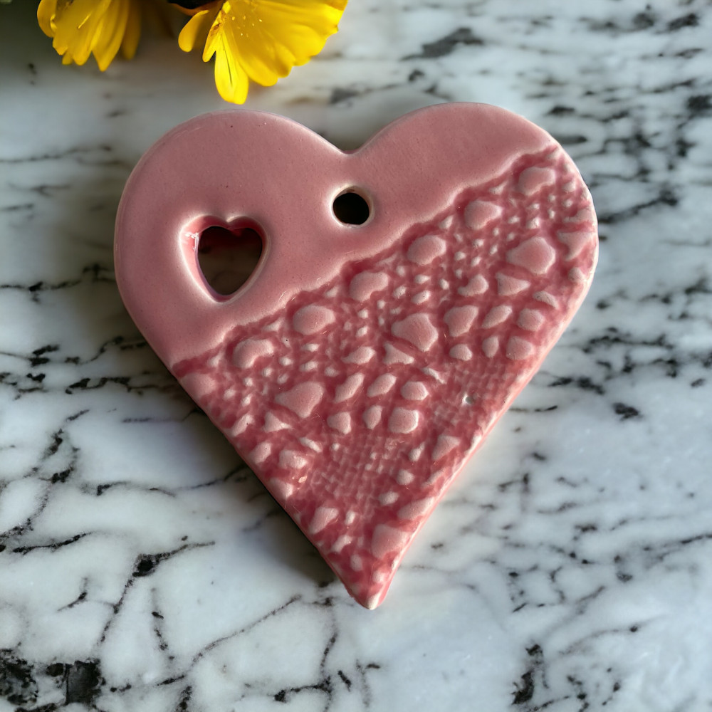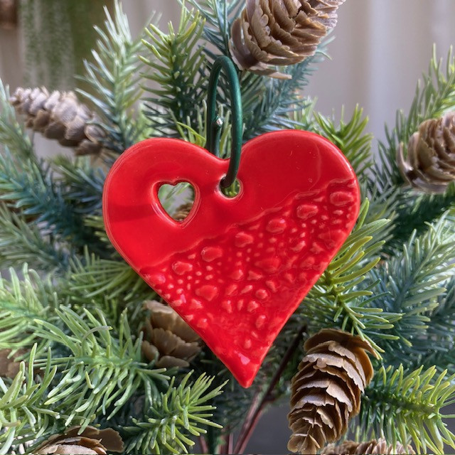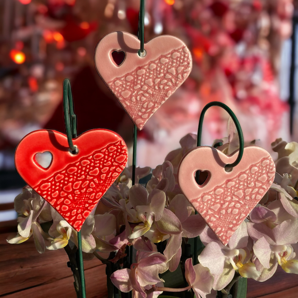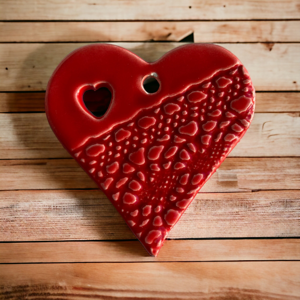 Kerámia szív csipke mintával. Használhatod ajándék kisérőnek, karácsonyfa dísznek, vagy válaszd hozzá a drót szárat és dekoráld vele a virágokat. A Kerámia szív csipke mintával nemcsak dekoratív, hanem tökéletes ajándék is lehet a szeretteidnek a karácsonyi szezonban.Méret 6*6 cm