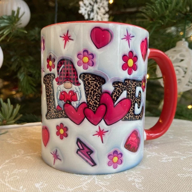 Különleges kerámia bögre romantikus mintával. A bögre mindkét oldalán nyomtatott.