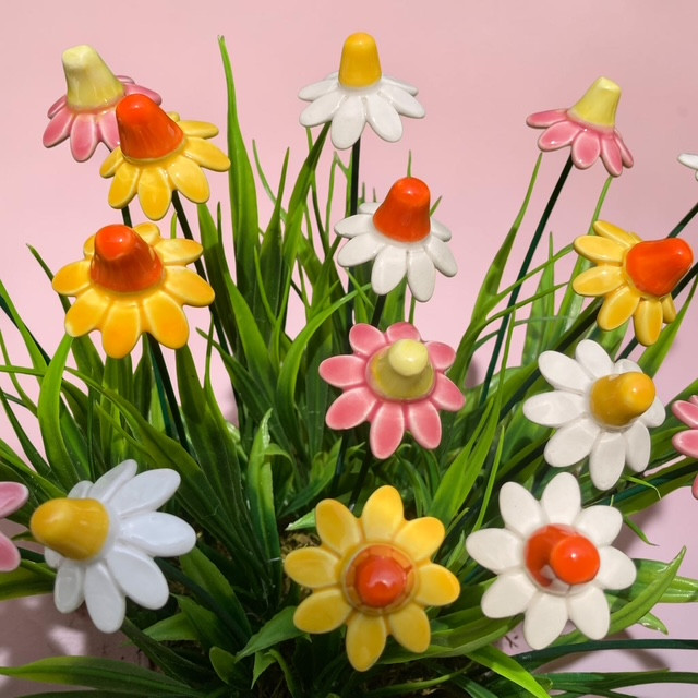 A kamilla kerámia virág egy bájos, mezei hangulatot idéző dekoráció, amely finom megjelenésével bármely otthonba természetes frissességet visz. Tökéletes választás nyári dekorációként, hiszen letisztult szépségével könnyed, vidám atmoszférát teremt minden helyiségben.