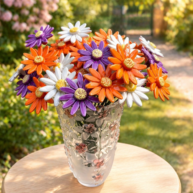 A kerámia gerbera színes, életvidám megjelenésével bármely otthon vagy kert hangulatos dísze lehet. Letisztult formája és élénk karaktere miatt önmagában is mutatós, de más kerámia virágokkal kombinálva is látványos kompozíciókat alkot.