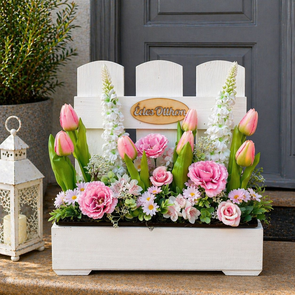 Letisztult, léces kialakítású fa virágláda, amely tökéletes választás bejáratok, teraszok vagy kertek dekorálására. Egyszerű, mégis stílusos megjelenésének köszönhetően könnyen kombinálható különféle virágos betétekkel és szezonális díszekkel.
