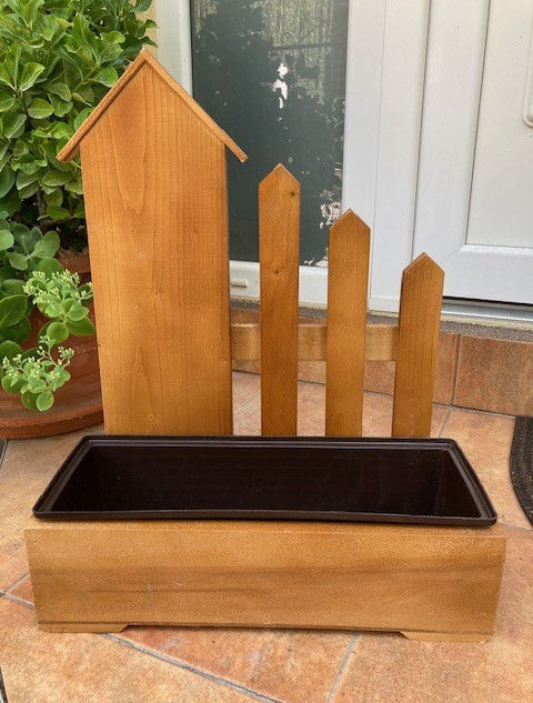 Fa üdvözlő virágláda kivehető műanyag ültető betéttel (40 cm).