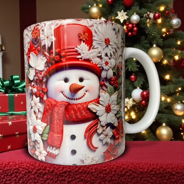 Karácsonyi bögre hóemberrel - piros 3 dl